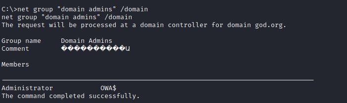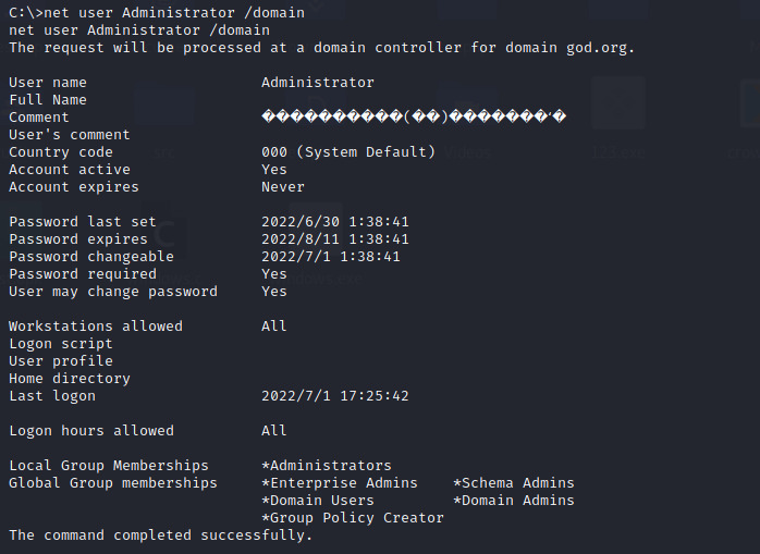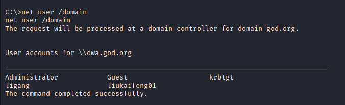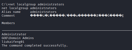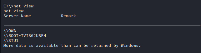 net view # 查看局域网内其他主机名 net config Workstation # 查看计算机名、全名、用户名、系统版本、工作站、域、登录域 net user # 查看本机用户列表 net user /domain # 查看域用户 net localgroup administrators # 查看本地管理员组(通常会有域用户) net view /domain # 查看有几个域 net user 用户名 /domain # 获取指定域用户的信息 net group /domain # 查看域里面的工作组,查看把用户分了多少组(只能在域控上操作) net time /domain #判断主域,主域服务器一般做时间服务器 net group 组名 /domain # 查看域中某工作组 net group "domain admins" /domain # 查看域管理员的名字 net group "domain computers" /domain # 查看域中的其他主机名 net group "domain controllers" /domain # 查看域控制器主机名(可能有多台) ipconfig /all #查询本机IP段,所在域等